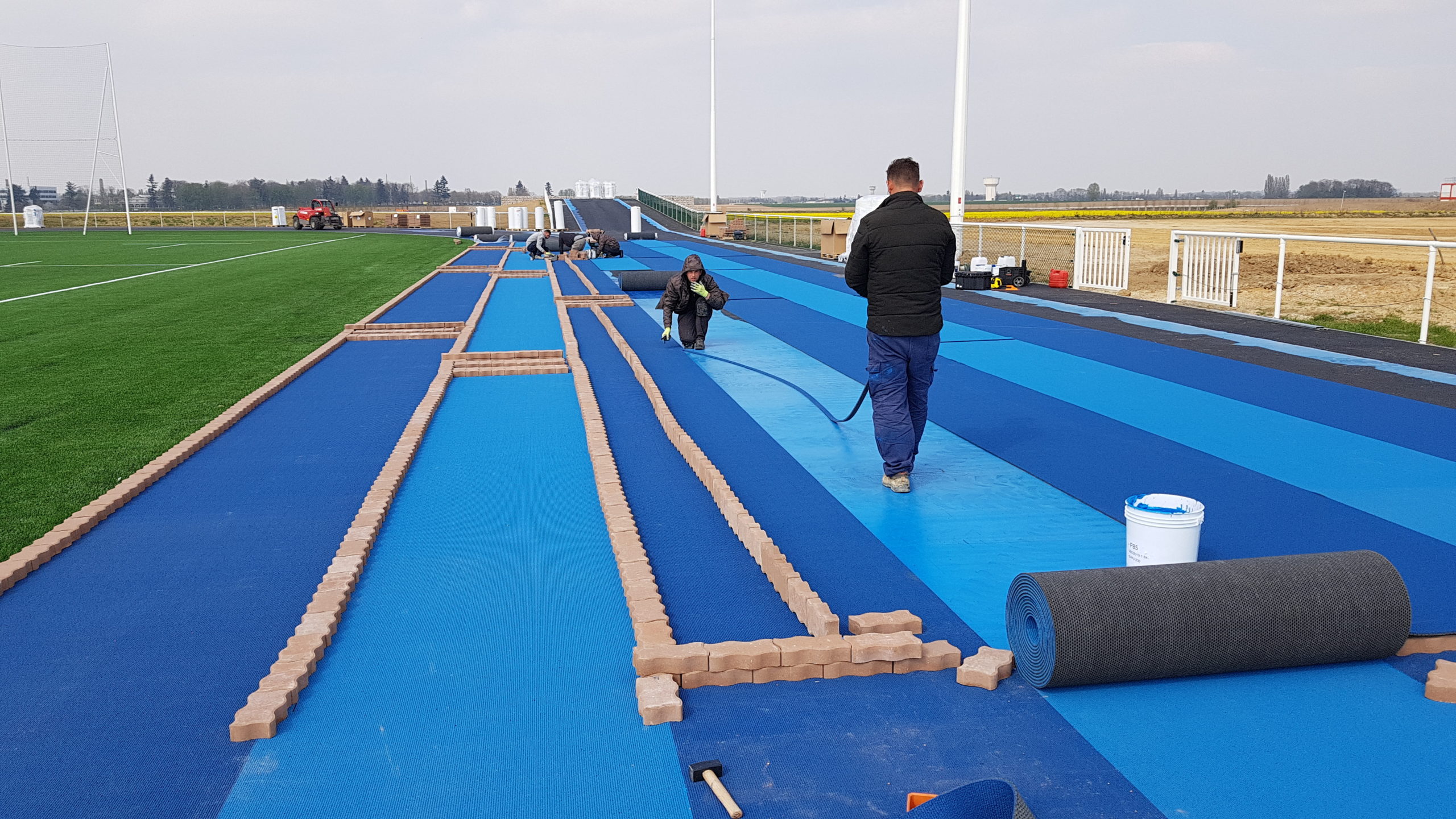 Pour une piste d’athlétisme déjà existante mais mal en point ou dont on souhaite tout simplement améliorer les performances, une solution existe : Resithan Topping. Le principe consiste à appliquer une résine polyuréthane imperméable sur laquelle on saupoudre des granulats caoutchouc avant de balayer. La solution est simple, rapide et permet de donner une seconde vie à votre piste d’athlétisme pour un coût maîtrisé.