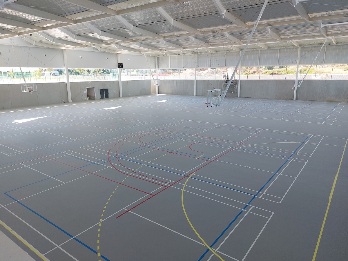 Ce sont ensuite 3650m² de PVC qui ont été installés. Plus de 2000m2 de Variuse de chez GRABO dans une salle, et 1350m² de Extrême, toujours du même fournisseur mais aux qualités sportives encore plus performantes, dans une autre. Deux produits idéals pour permettre la pratique combinée de différents sports d’intérieur comme le basketball, le handball ou le volleyball.